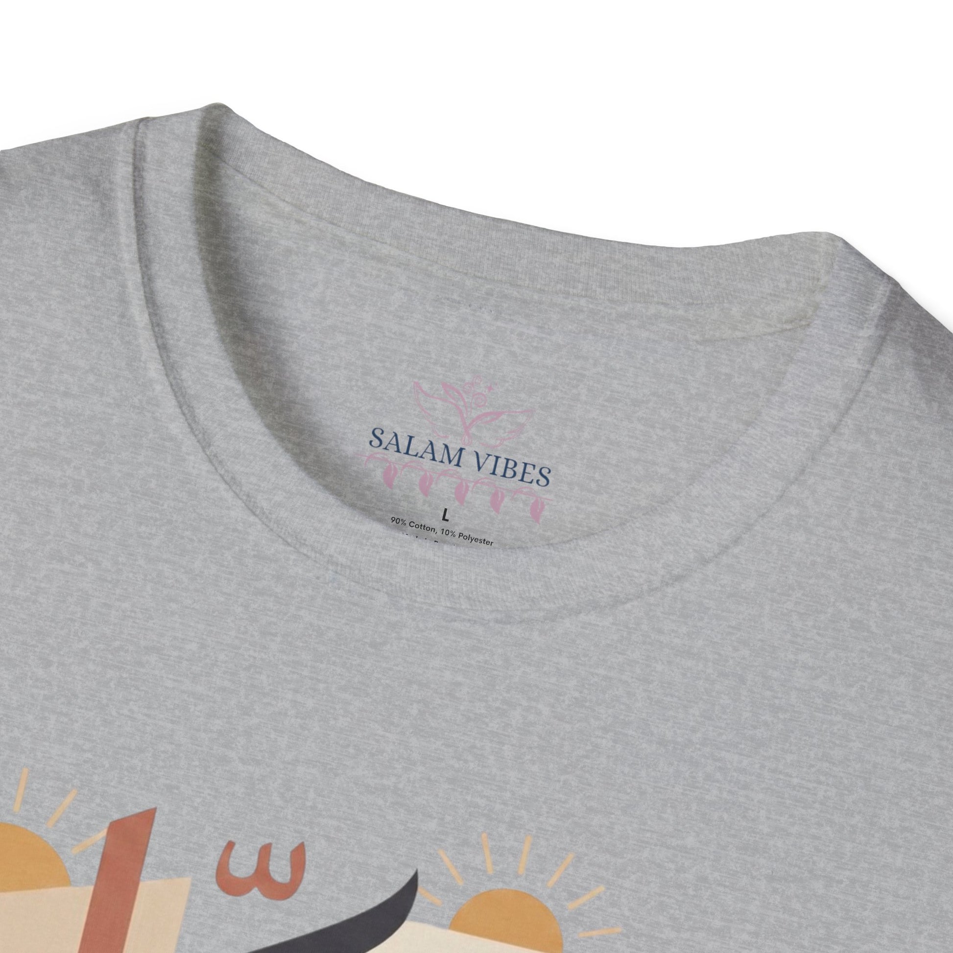 A soft, breathable cotton tee that wears like a second skin and carries a calm, contemplative spirit. Clean Arabic calligraphy sits centered on the chest in warm earth tones—muted terracotta, sand, and deep charcoal—layered into a minimalist geometric backdrop. Lightweight and smooth, the shirt moves quietly through everyday life: morning coffee runs, mosque visits, study sessions, or slow afternoons with friends. It’s tailored for someone who values subtle expression over loud branding — a gentle nod to faith and presence that integrates effortlessly with layered streetwear or simple jeans. The muted palette and neat crew neckline keep the look refined and wearable, while the tear-away label and durable ribbed collar make it comfortable for all-day wear.